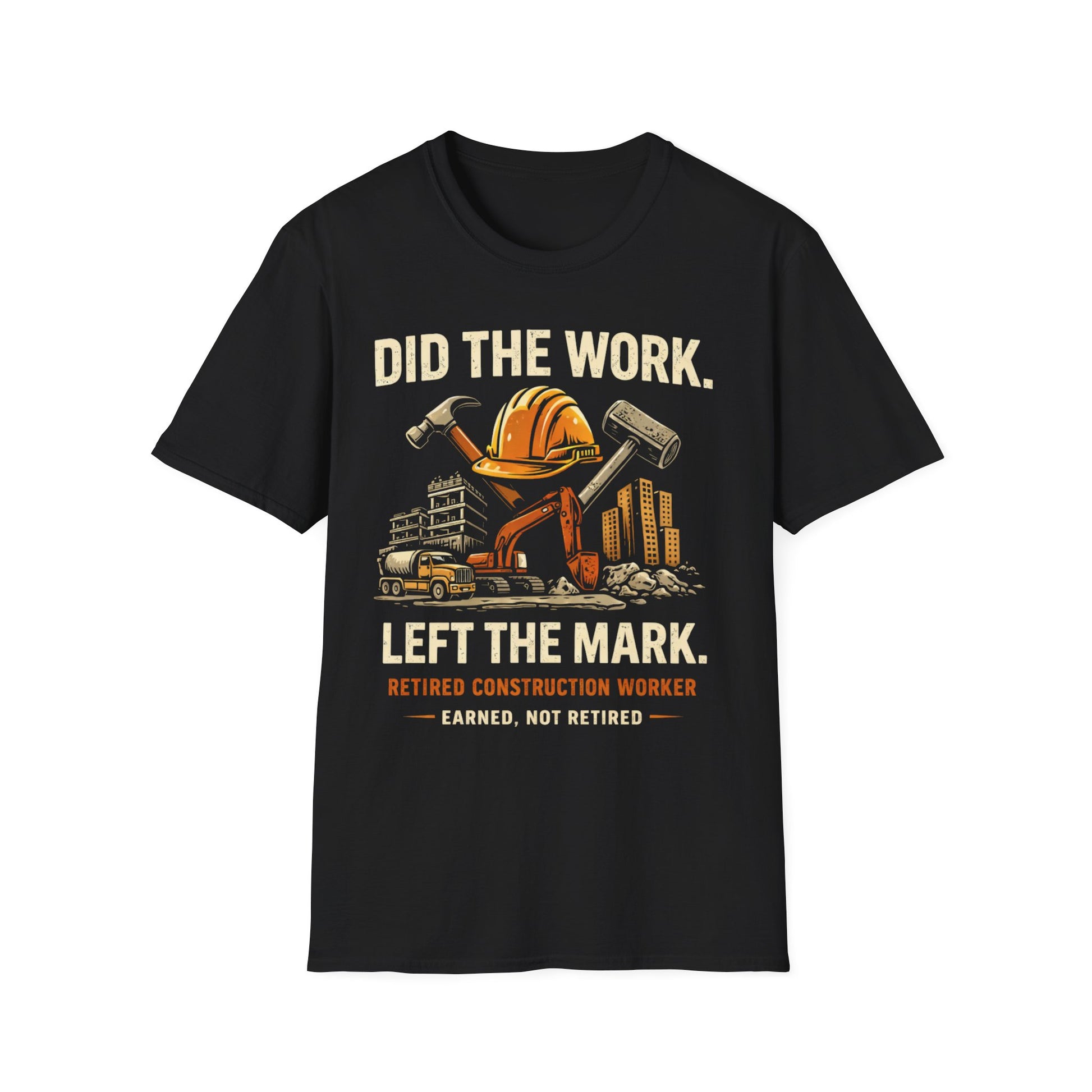 Retired Construction Worker T-Shirt - "Did The Work. Left The Mark."
